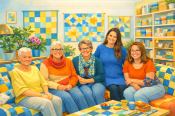 Elke eerste maandagavond van de maand is er een gezellige zoombee. Samen quilten en kletsen, en dat zonder reistijd!