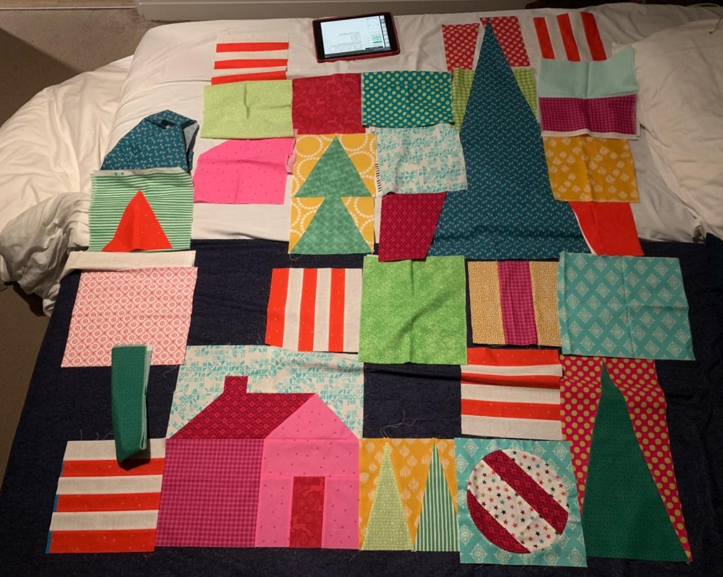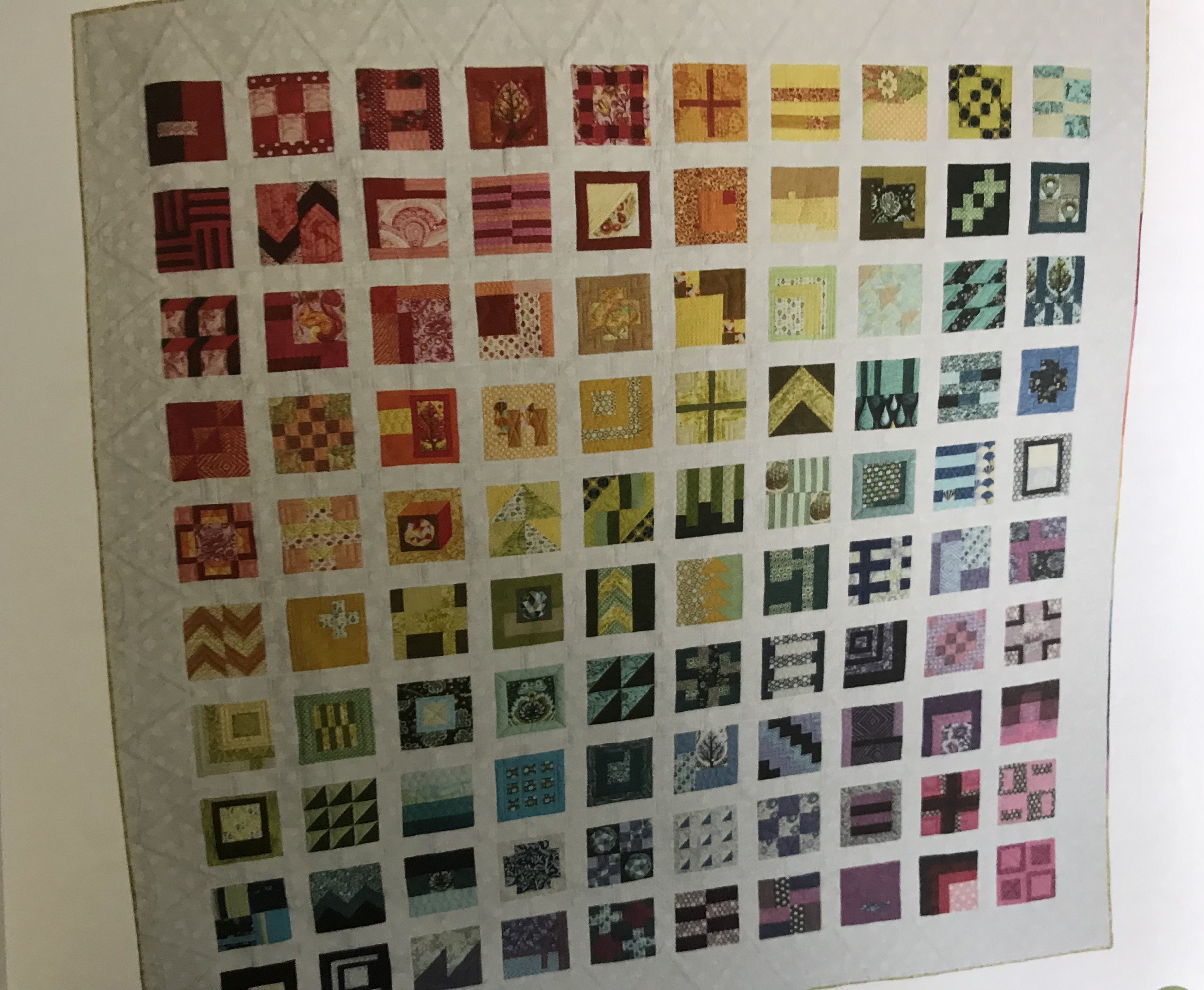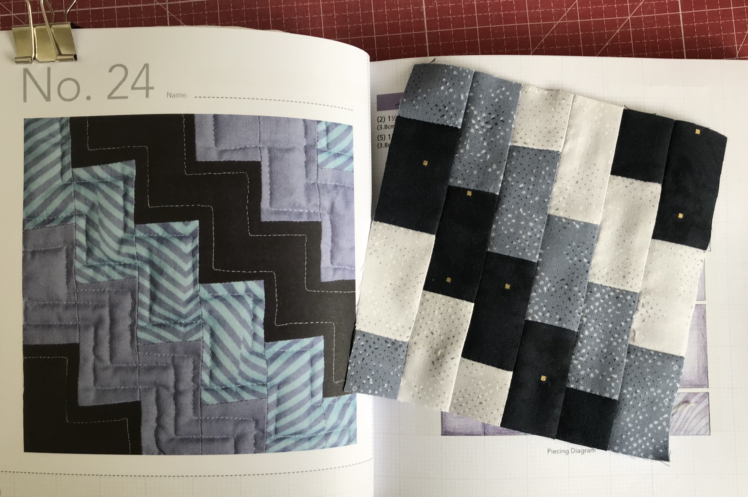 Dit boek heb ik al langer in huis en wilde altijd al een aantal blokken eruit maken, maar heb het tot nu toe alleen als referentieboek gebruikt om ideeën op te doen. Op een gegeven moment kwam Sanne uit berichten op de sociale media erachter dat het nog maar 100 dagen tot Kerstmis was. Ze had het idee om elke dag uit dit boek een blok te naaien, zodat ze alles afgerond heeft als het kerst is. In haar post op Instagram (@sewbysanne) hierover vroeg ze wie zin heeft om mee te doen. Ik wilde toch allang iets uit dit boek maken, dus greep ik meteen de kans om ook hiermee te starten. Al was ik me nog niet helemaal zeker of ik dit wel zou volhouden. Een aantal uit onze vereniging hebben zich ook aangesloten, sommige hadden uit vorige jaren nog een aantal blokken liggen en waren ergens blijven steken, andere begonnen vanaf de start. Nu kun je ze vinden met de hashtags zoals #100modernblocks, #citysampler of #100daysuntilchristmas. Terwijl ik dit schrijf, ben ik tot blok 29 gekomen en heb het beter volgehouden dan ik verwacht had. Je vindt mijn blokken bij @quilting_happiness. Hopelijk haal ik de eindstreep en blijf ik niet ergens hangen. Heb jij ook zin om met ons mee te naaien? Het is misschien nog in te halen!