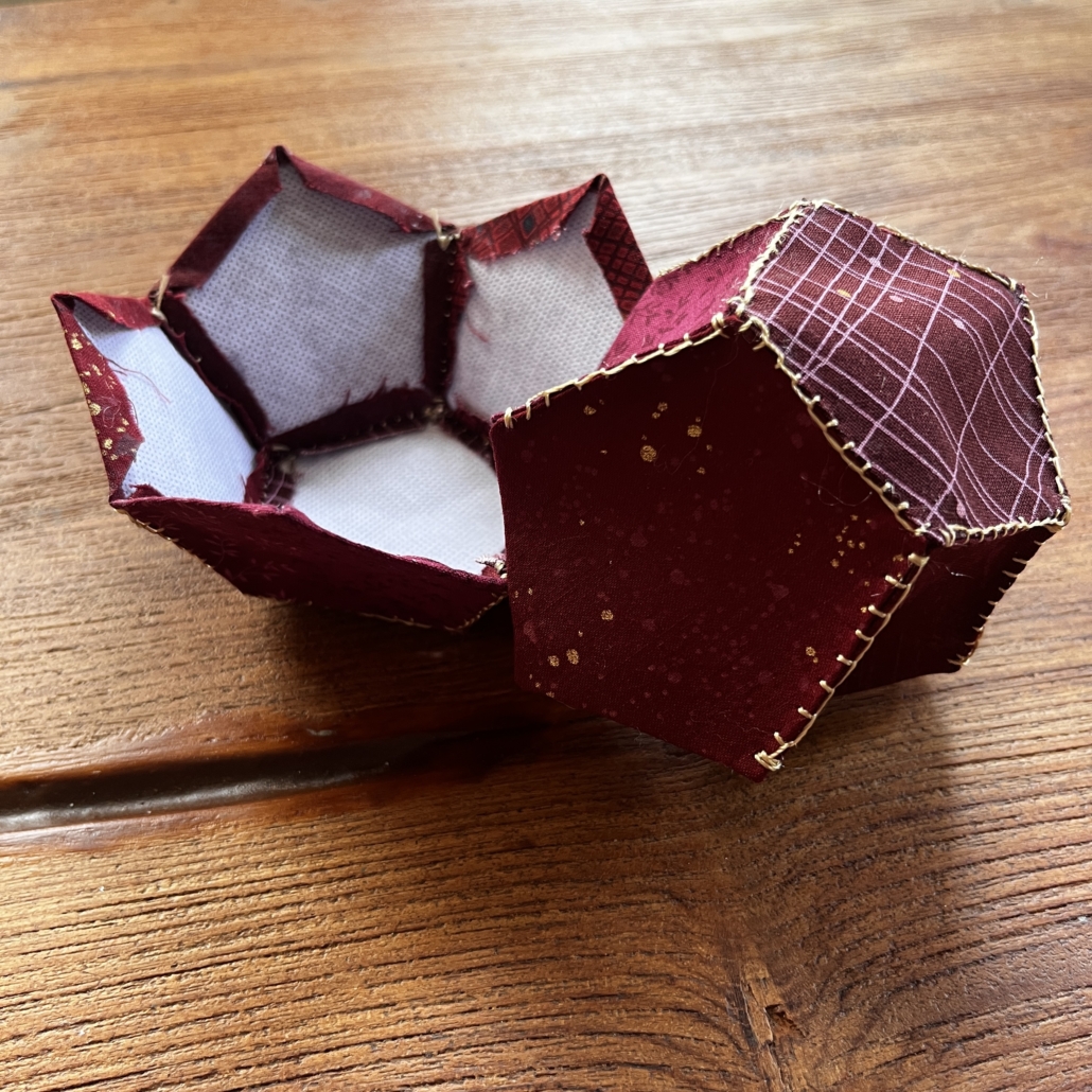 Wat doe je als je een blog zou schrijven over ontwerpen met de vorm van oktober – en er komt absoluut geen idee voor een quiltblok of quilt uit? Ik heb dagen lopen kauwen op deze vorm, maar echt de enige invalshoek die mij te binnen viel was de dodecaëder…
