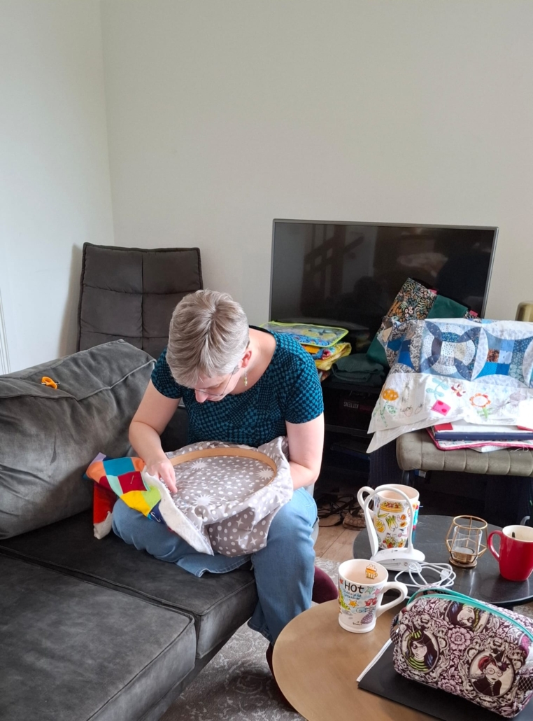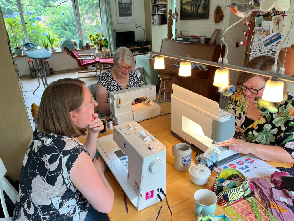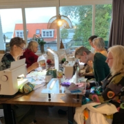 Ondertussen zijn we twee keer bij elkaar geweest, en wat hebben we genoten. Er werd natuurlijk flink genaaid en gepraat, maar vooral veel inspiratie opgedaan. Ieder werkt aan zijn of haar eigen project, maar er is altijd ruimte om mee te kijken, advies te geven of gewoon even te bewonderen wat een ander maakt.