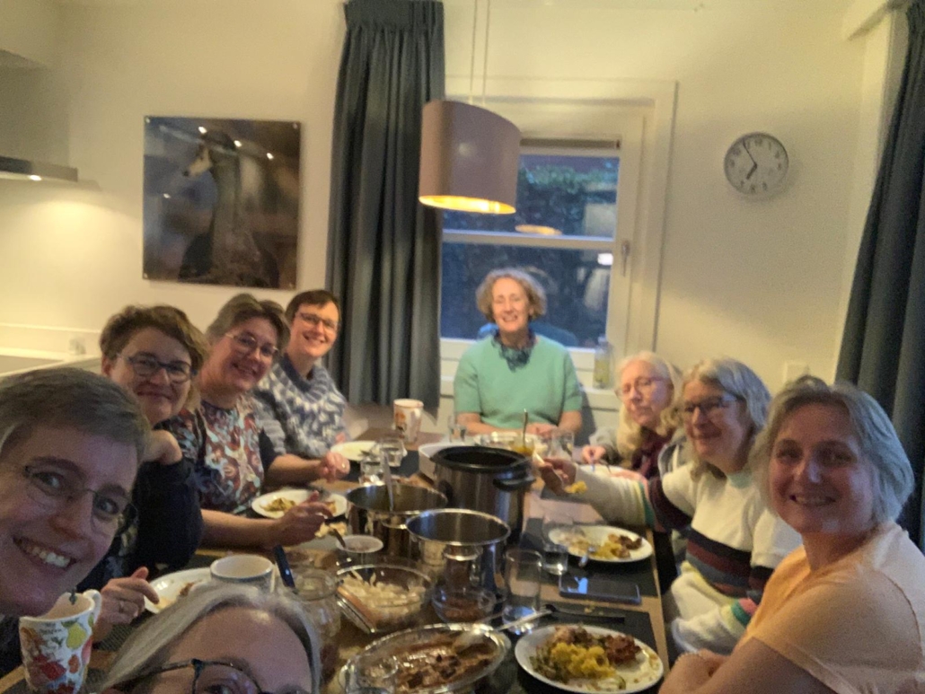 Daarna alles weer ingepakt, het huisje weer in oorspronkelijk staat teruggebracht en afscheid van elkaar genomen. Maar niet voordat we het volgende weekend hadden vastgelegd. Volgend jaar gaan we weer het eerste weekend van oktober op retreat. We zijn nu druk op zoek naar een huis met 10 slaapkamers en een grote tafel ergens in Nederland, liefst niet te ver rijden. Kortom het was een groot succes!