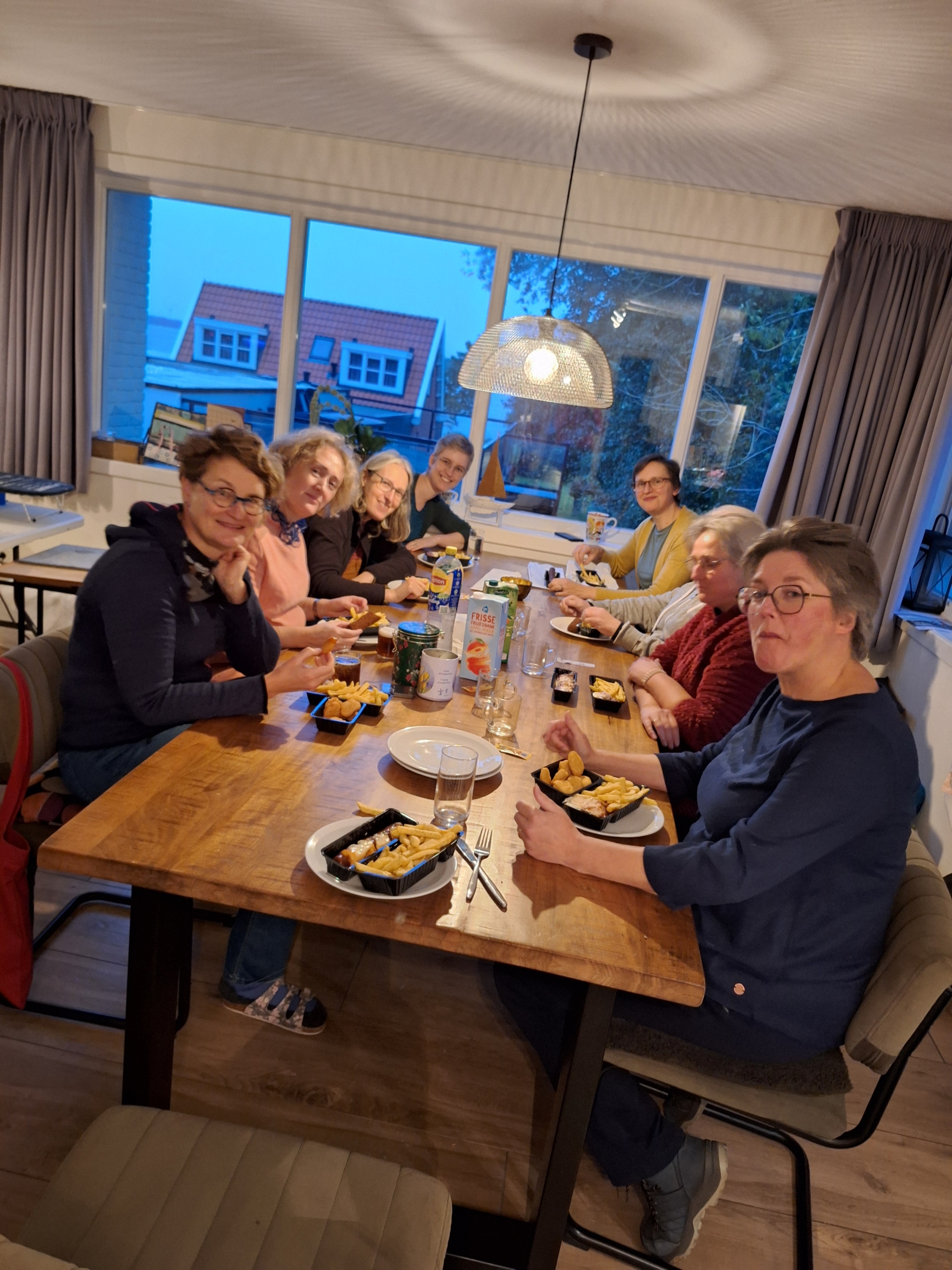 Voor de lunch zorgen we zelf. De eerste keer heeft Ineke heerlijke soep gemaakt en de tweede keer heb ik voor broodjes gezorgd. De koffie bij Ineke smaakt ook erg goed.
