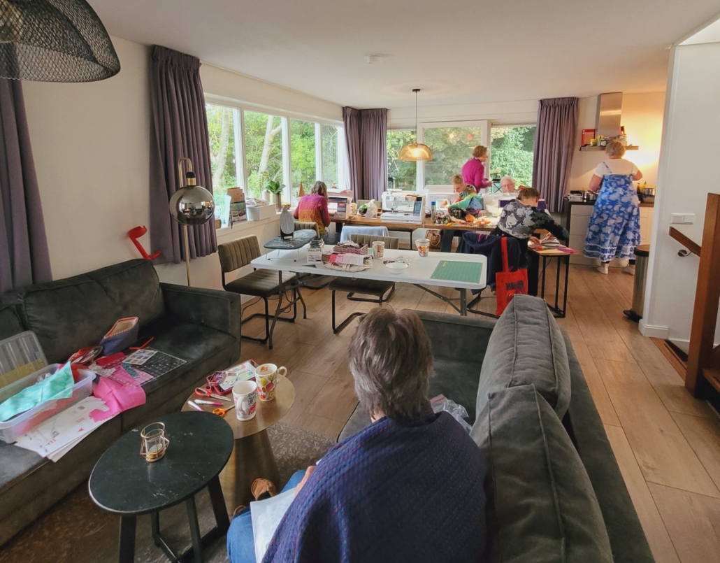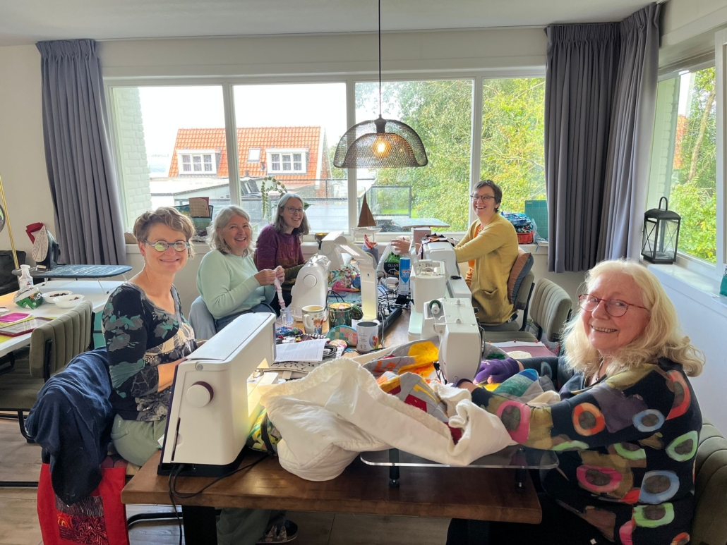 We hebben gelachen, gepraat, te veel chocola en drop gegeten en enorm veel lol gehad. En tussen de buien door lekker uitgewaaid, ook erg belangrijk als je de hele dag achter de naaimachine zit.
