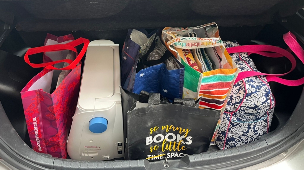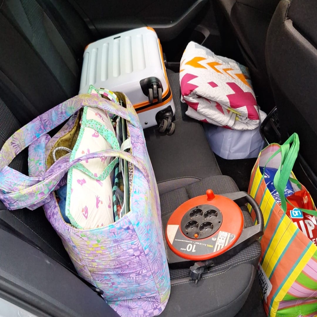 Tijdens onze maandelijkse bees ging het steeds vaker over ons weekend weg. In de weken voor het eerste weekend van oktober was het druk in onze appgroep. Er gingen gesprekken over wie met wie mee zou kunnen rijden. Wie wat zou meenemen om te eten. Wat iedereen van plan was om te gaan doen. Of we in huispak of pyjama konden naaien/quilten. Maar vooral waren we allemaal aan het aftellen.