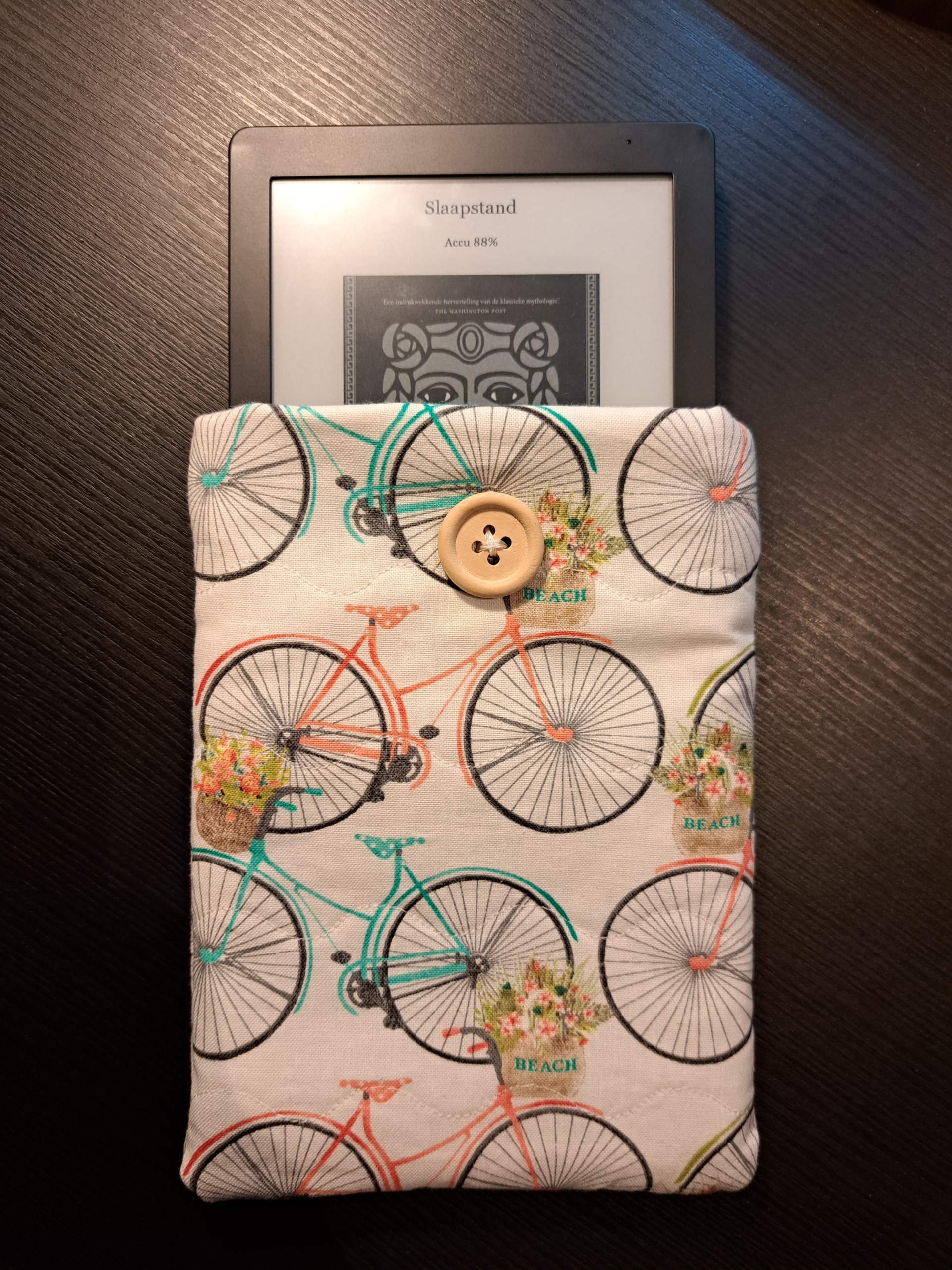 Op 14 december haalde ik mijn eigen naaimachine op. Een Pfaff Passport, omdat ik hem waarschijnlijk vaak mee zou nemen. Ook bestelde ik een paar stofjes en werd ik lid van de stoffenclub van Nanno zodat ik zelf aan de slag kon. Niet alleen met quilten, ook met het maken van kleinere projecten. De kerstvakantie gaf me mooi wat extra tijd om wat te proberen. Een paar dingen die ik heb gemaakt zijn: een tasje voor een mobiel (waar ik nu mijn rolmessen in meeneem), een bladwijzer voor een notitieboekje met een pennenvakje (die mocht ik ook gelijk voor mijn moeder maken), onderleggers en een hoesje voor mijn e-reader.