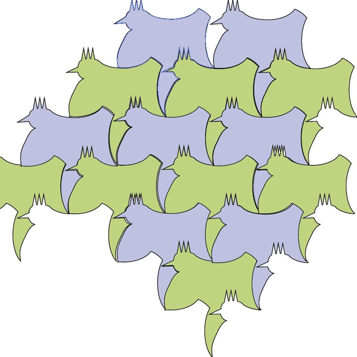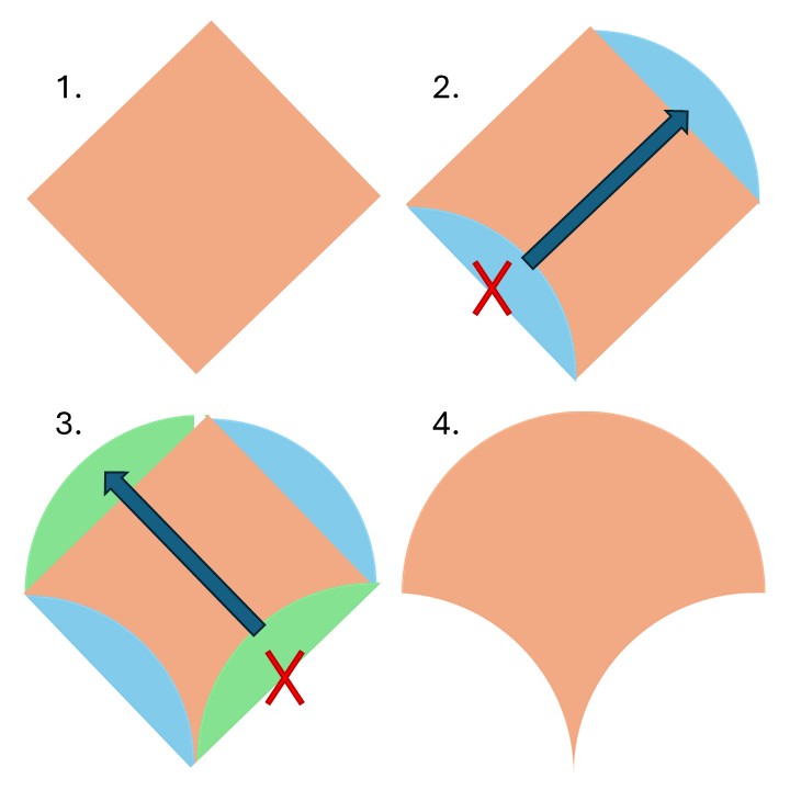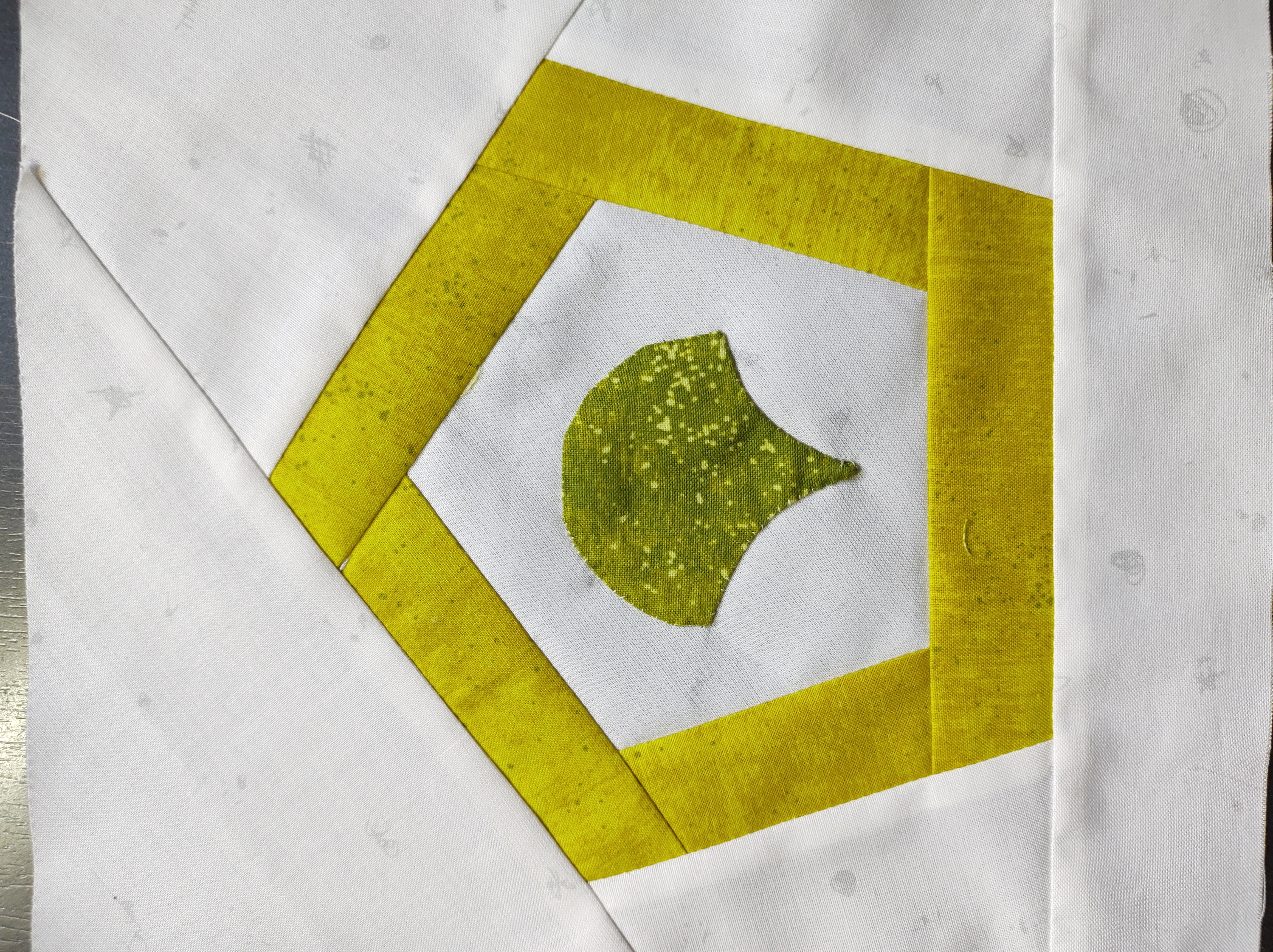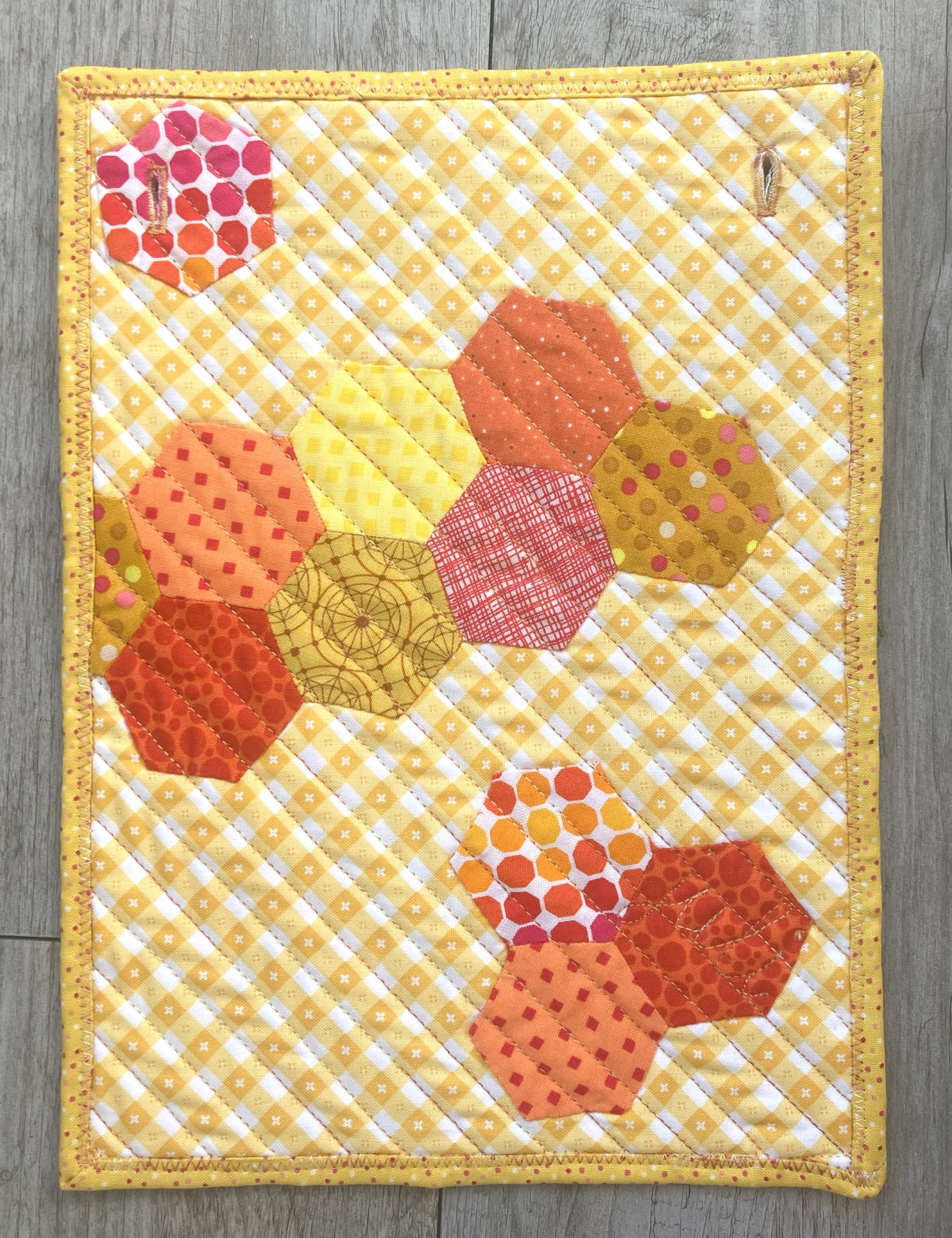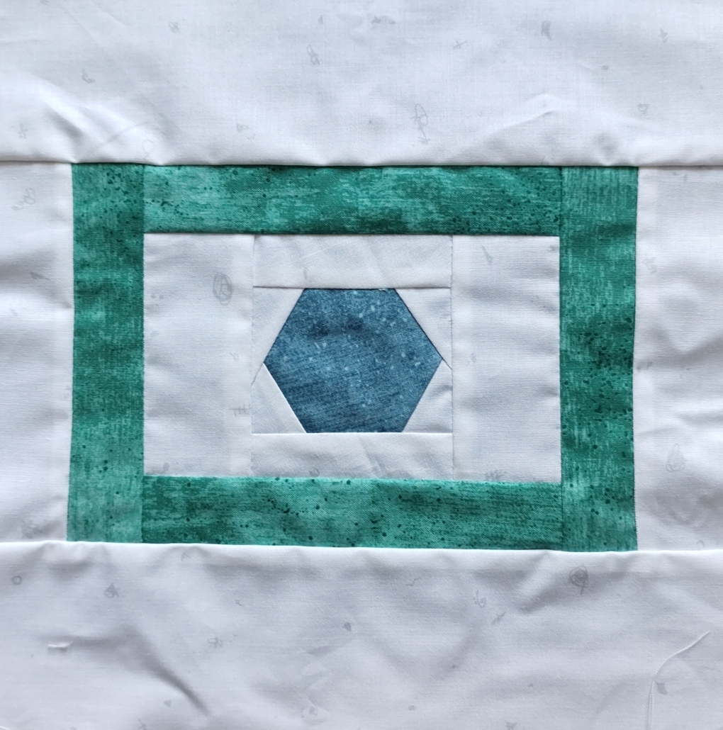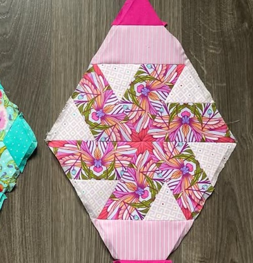 Deze keer een vorm met hoeken (de afwisseling gaat nog even door…..) maar nog steeds niet de veel geopperde driehoek. Een veelzijdige vorm deze maand, goed voor EPP maar er zijn mogelijkheden met de naaimachine.