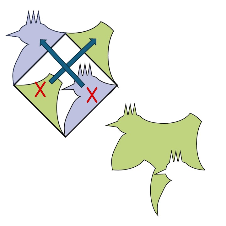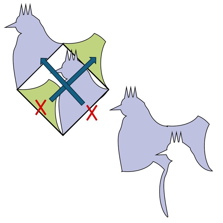 Bij het fussycutting snij of teken ik de mail uit en gebruik dan een schaar of een kleine ruler om de vormpjes uit te snijden. Belangrijk vind ik zelf altijd om een plaatje te passen dat goed in verhouding is met de vorm, dus niet te veel, maar ook niet te weinig achtergrond. Je kan dit natuurlijk ook gebruiken om een nieuw patroon te laten ontstaan zoals op de foto’s hieronder.