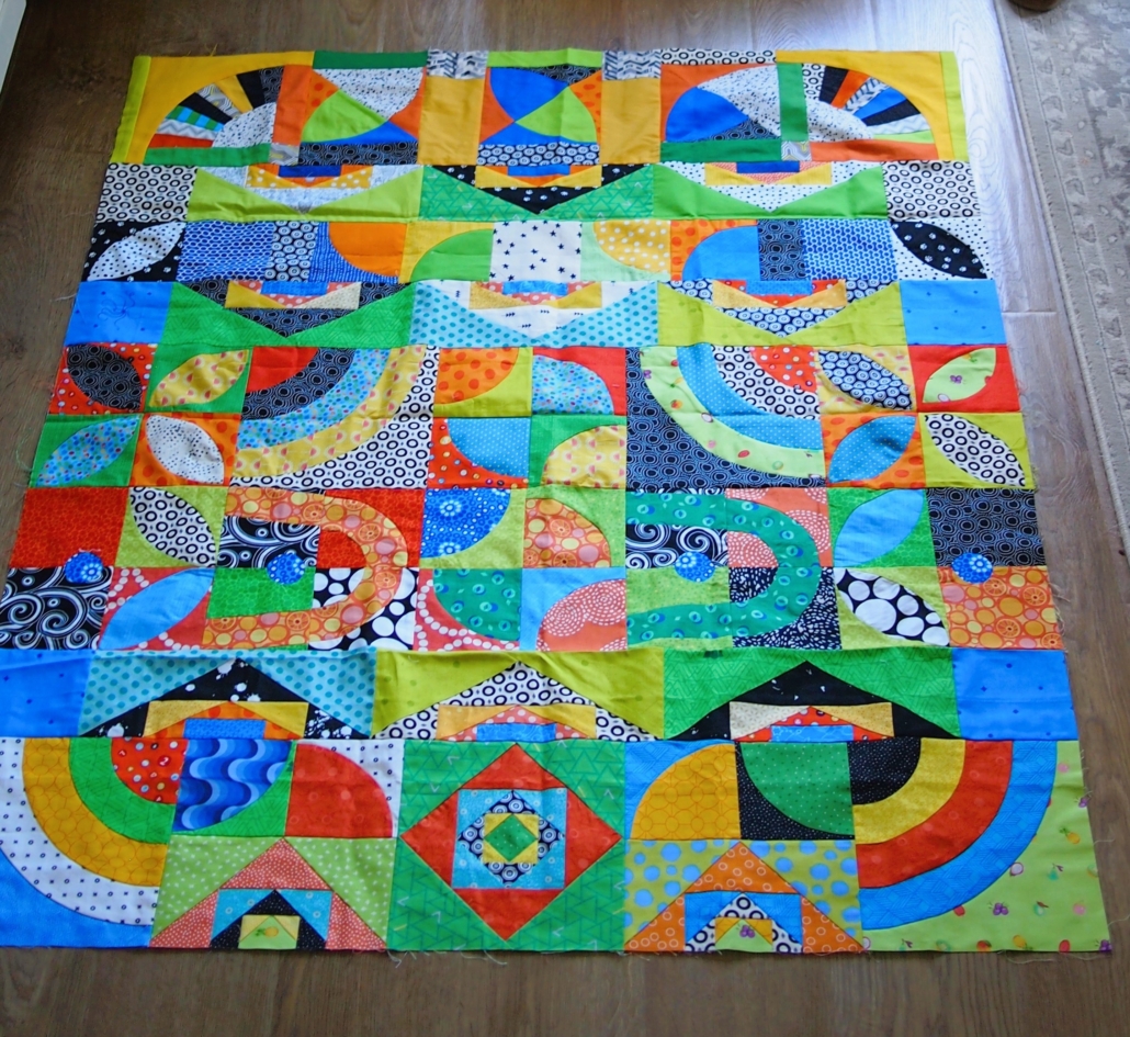 De uitdaging zat ‘m deze keer ook weer in de stukjes improv. Dat blijkt toch nog steeds buiten mijn comfortzone. Vaak genoeg doen dan maar. Eenmaal onderweg werd het toch gelukkig weer een stukje makkelijker. Ergens heb ik nog een ideetje voor een toevoeging aan de quilt, door de opmerking dat het echt een gebruiksquilt zal worden durfde ik dat er niet op te maken. Misschien toch maar los maken zodat ze zelf kan beslissen of het er op mag…